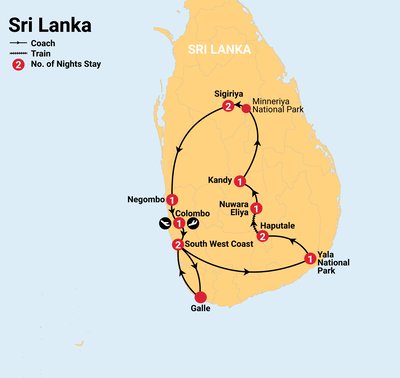 This 13-day journey through Sri Lanka takes in history, wildlife, and enchanting landscapes. Wander Colombo’s vibrant streets, marvel at Galle Fort, and unwind on South West Coast beaches. Tick off Yala and Minneriya national parks, Nuwara Eliya’s tea country, and experience cultural performances in Kandy and ascend Sigiriya Rock Fortress.