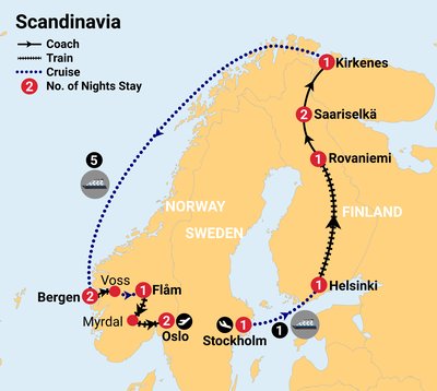 Embark on an 18-day journey through Scandinavia with our "Follow the Midnight Sun" tour! Explore Stockholm, Helsinki, and Oslo, marvel at the Arctic's Midnight Sun, cruise Norway’s iconic fjords, and experience scenic railways. Highlights include a husky hike, Santa’s Village, and the breathtaking Lofoten Islands. Nature, culture, and unforgettable memories await!