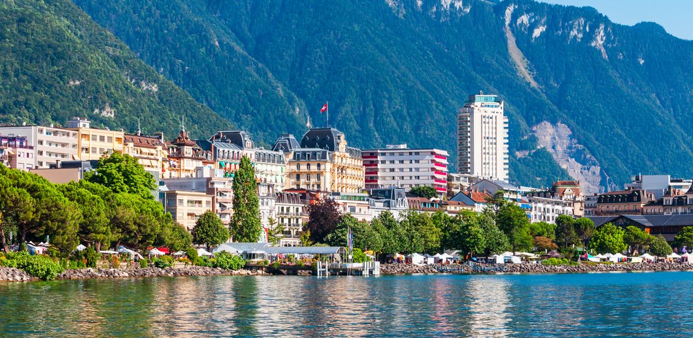 Continue by train to Montreux, nestled between steep hills and the lakeside of Lake Geneva. The town's promenade is lined with flowers, sculptures, Mediterranean trees and grand Belle Époque buildings. Nearby attractions include the medieval island castle, Chateau de Chillon and the vineyards of the Lavaux region.