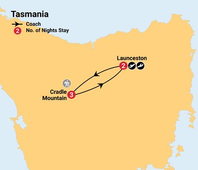 We spend three nights at Cradle Mountain Discovery Holiday Park in comfortable two-bedroom cabin style accommodation - surrounded by native bush. The cabins contain shared bathroom facilities, and each of the bedrooms has its own double bed. There is a small lounge area with kitchenette, cosy gas log heating and an outdoor sitting area. Your guides will stay nearby - and their cabin will be used for breakfasts, lunch making and dinners.