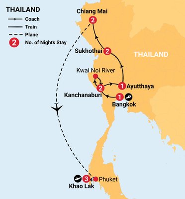 Please note that the day train from Ayutthaya to Phitsanulok can only be booked one month in advance, which can result in unavailability on some periods that fall to high/peak season such as November – February, or on unexpected departures which reach full capacity. If this is the case, a private bus will be used for the entire route.