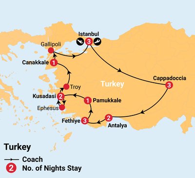 This tour is partially escorted by a dedicated tour leader who will accompany you throughout the tour, aside from your 3 night beach break in Fethiye.