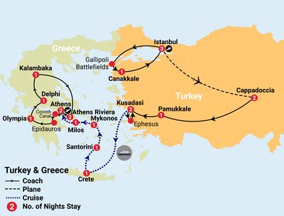 Embark on an unforgettable journey through Turkey and Greece, where ancient history meets breathtaking landscapes. Explore iconic sites, sail the Aegean’s turquoise waters, and enjoy expert-guided tours. With a blend of immersive land explorations and a relaxing cruise, you’ll experience the best of both worlds in comfort and style.