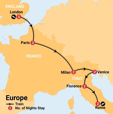✓ Discover the Highlights of Europe on an independent journey through iconic cities, from London and Paris to Italy’s cultural heart — Rome, Florence, Venice and Milan