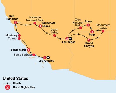 ✓ Incredible sightseeing including the breathtaking Grand Canyon, Yosemite National Park and Monument Valley, discover the vibrant cities of Las Vegas, San Francisco and Los Angeles