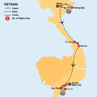 Please note for 2024 departures you will travel to Halong Bay for the evening of day 2, returning to Hanoi by road on day three. Touring of Hanoi is on day 4 prior to the afternoon flight to Danang.