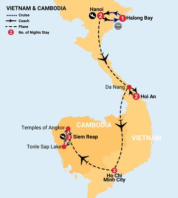 Explore Vietnam and Cambodia’s cultural and historical highlights over 12 unforgettable days: enjoy an overnight Halong Bay cruise, and explore the charming city of Hoi An. Discover Cambodia’s rich history, starting in Siem Reap, the gateway to the Angkor ruins.