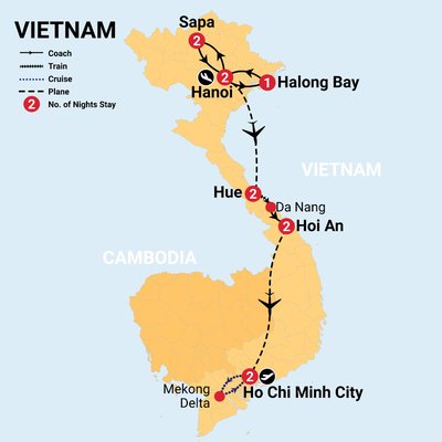 ✓ Authentic grassroots exploration of Vietnam with incredible sightseeing, including an overnight cruise on Halong Bay and guided tours of Sapa, Hanoi, Hue, Hoi An, Ho Chi Minh City and the Mekong Delta