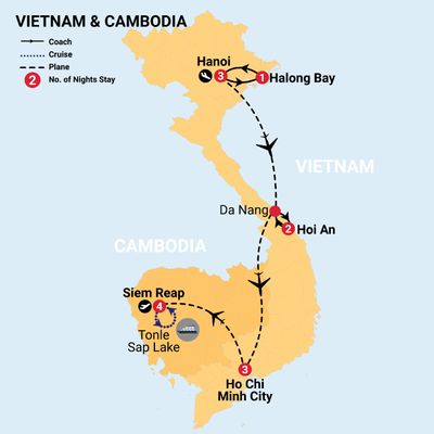 ✓ Incredible sightseeing, including exploring the vibrant capital Hanoi, historic Hoi An, Ho Chi Minh City, iconic sights like Tran Quoc Pagoda, Ho Chi Minh Mausoleum Complex and the famous Cu Chi Tunnels, Cambodia’s Siem Reap, spectacular Angkor temples and Tonle Sap Lake