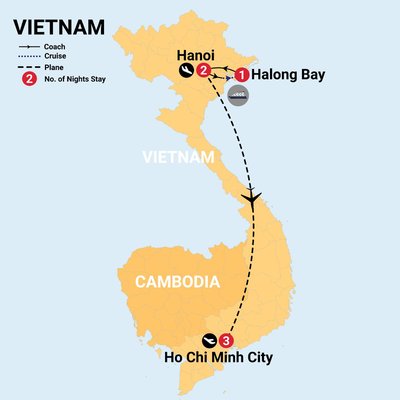 ✓ Incredible sightseeing including, strolling around the bustling capital of Hanoi, embarking on a walking tour to explore Vietnam's lively street food scene, reveling in an unforgettable overnight cruise on the stunning Halong Bay, and discovering the most notable highlights of Ho Chi Minh City