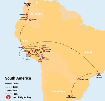 ✓ Incredible sightseeing, including the Inca treasure Machu Picchu, the Peruvian Amazon jungle, Iguazu Falls, islands of Lake Titicaca, glamorous Buenos Aires and vibrant Rio de Janeiro,