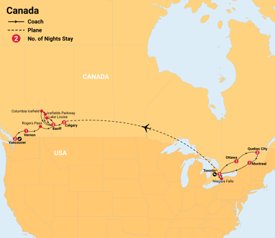 This tour is partially escorted by a dedicated tour leader who will accompany you throughout the tour, from days 1 to 8, and 10 to 16. On day 9 you will independently fly between Toronto and Calgary, where you will join your new tour leader and group the following morning.
