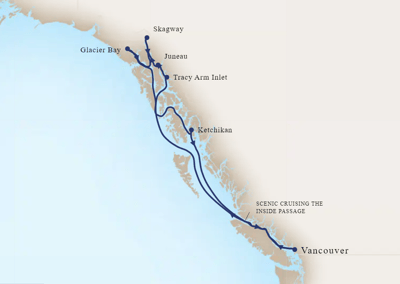 Alaska’s Inside Passage is a protected network of waterways that wind through glacier-cut fjords and lush temperate rain forests along the rugged coast of Southeast Alaska. Arguably one of the greatest cruising routes in the world, the Inside Passage stretches through stunning landscapes, from Misty Fjords National Monument to famed Glacier Bay National Park & Preserve.