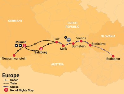 ✓ Incredible sightseeing including Munich, Neuschwanstein Castle & Linderhof, Salzburg salt mines, Linz, Melk, Durnstein, Vienna, Bratislava & Budapest and more