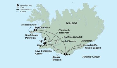 Explore the Snæfellsnes Peninsula and take in black sand beaches, volcanic craters and the Snæfellsjökull glacier. Here, it’s your choice! Experience total darkness in Vatnshellir Cave, descending 100 feet to an 8,000-year-old lava tube -OR- walk along the coastline, passing cliff and columnar basalt formations, putting your camera to work snapping photos of this dramatic landscape. Connect with the local culture and visit a family that practices a 400-year-old tradition of catching and preserving the Greenland shark; you’ll also taste hákarl – cured shark meat. End your day on a Sea Tours nature cruise of Breiðafjördur Bay and sample fresh scallops and sea urchin roe straight from the ocean. You might spot puffins, cormorants, and the white-tailed eagle soaring along the shoreline.