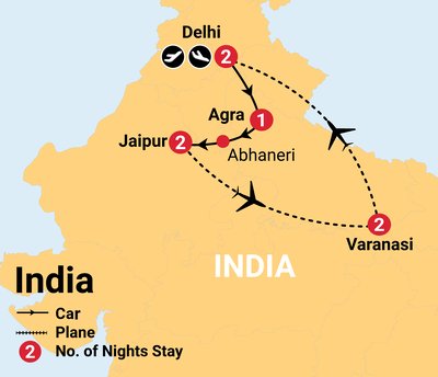 ✓ Incredible sightseeing as per the itinerary, including bustling Delhi, the iconic Taj Mahal in Agra, Jaipur's Amber Fort and Palace of the Winds and the Abhaneri step well. Enjoy a sunrise boat ride on the Ganges River in Varanasi, walk the back lanes of Varanasi’s old city
