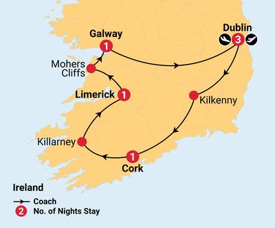 ✓ Incredible sightseeing including city tours of Dublin & Clonmacknoise, boat tour in Ross Castle and admissions to Powerscourt gardens, Rock of Cashel National Park , Folk park in Bunraty , Cliffs of Moher & Clonmacnoise monastic ruins