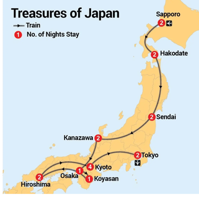 Please note - Today your luggage will be transferred to Sendai in preparation for our arrival. You will need to pack a bag for two nights and your luggage will arrive on Day 5 in the evening.