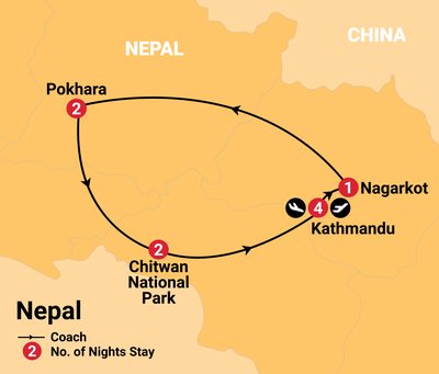 ✓ Incredible sightseeing, including panoramic views of the Himalayas from Nagarkot at sunrise and sunset, wildlife safari in Chitwan National Park and the highlight - a spectacular scenic flight to view Mount Everest