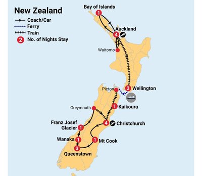✓ Incredible sightseeing including Bay of Islands, Waitomo and Hobbiton, all of New Zealand’s renowned great journeys including all three famed, scenic rail journeys and the Interislander ferry, whale watching in Kaikoura, visit New Zealand’s famous glaciers and national parks including Mount Cook and Franz and Fox Glaciers