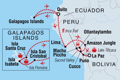 ✓ Visit South America and travel to the Galapagos Islands, Peru, Ecuador, and Bolivia