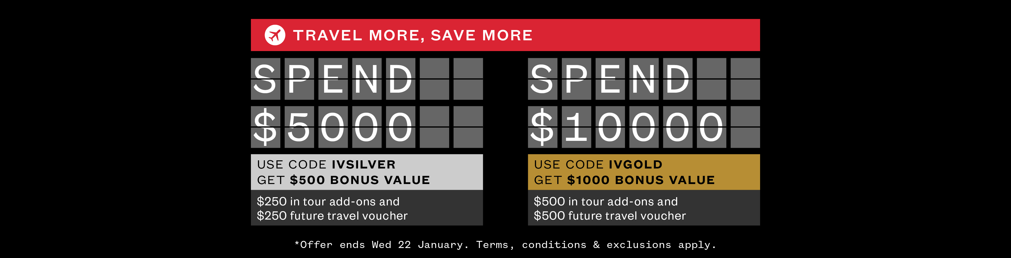 Get $250 or $500 to spend on optional tour add-ons, and earn a voucher for your next Inspiring Vacation (ensuring your wanderlust is always satisfied) with our latest don't-book-and-you'll-miss-it offer.