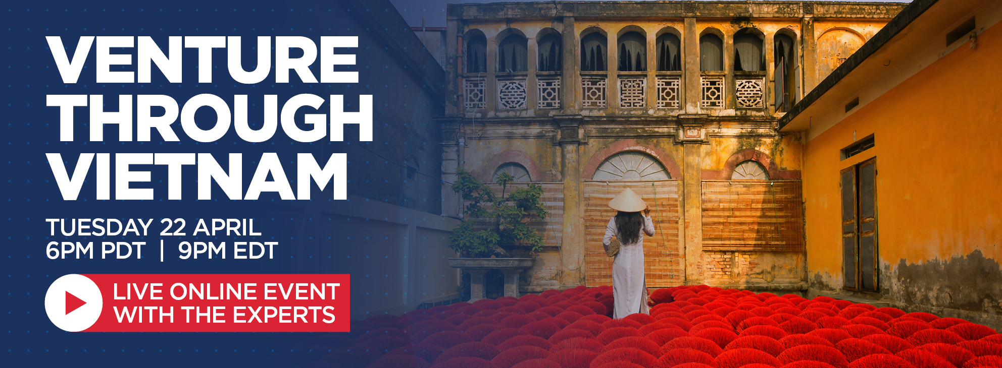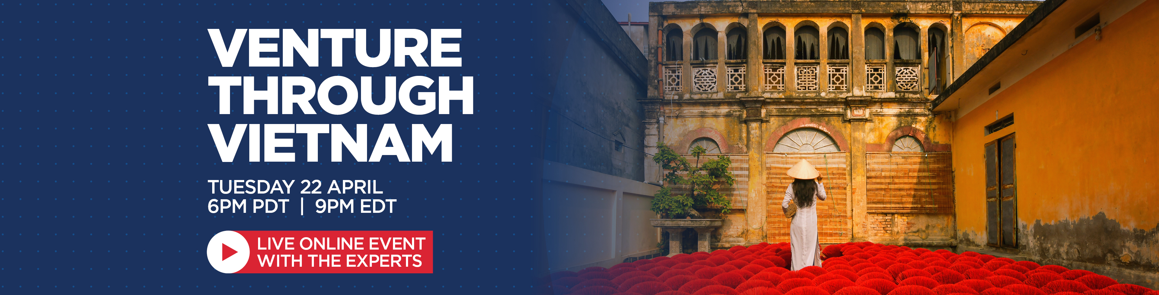 Register now for our free live online event on Tuesday 22 April at 9pm (EDT). We’ll discuss all things Vietnam and explain what you can expect touring this amazing destination with the experts.