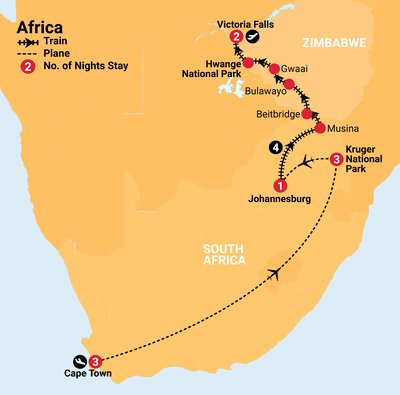 ✓ Luxury Rovos Rail journey from Johannesburg via Matobo National Park and Hwange to Victoria Falls