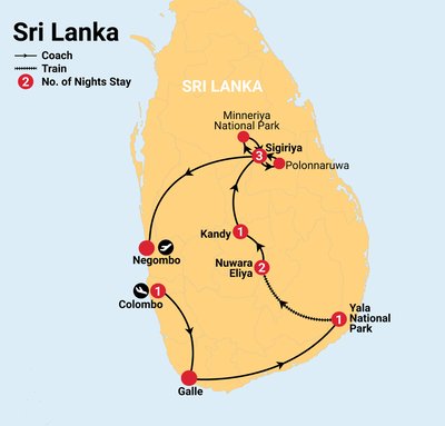 This 9-day snapshot of Sri Lanka packs a punch: see Galle Fort, the Temple of the Tooth Relic, Dambulla Cave Temple, and Sigiriya Rock Fortress. Bucket list icons ticked off the list: safaris at Yala and Minneriya national parks and a train ride through Nuwara Eliya's tea plantations.