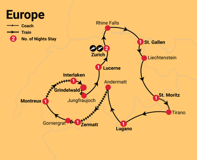 ✓ Incredible sightseeing! Tour Switzerland by world-famous rail journeys and luxury vehicles, experience the alpine wonderlands of Jungfraujoch and Gornergrat, explore cosmopolitan cities like Zurich and charming Swiss villages and resort destinations like Lucerne, Lugano, St. Moritz, Montreux and Grindelwald