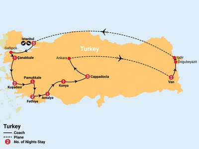 ✓Incredible sightseeing including Istanbul's historic monuments, visit the spectacular Ishak Pasha Palace, the ancient outpost of Van and the cliffs of Gallipoli