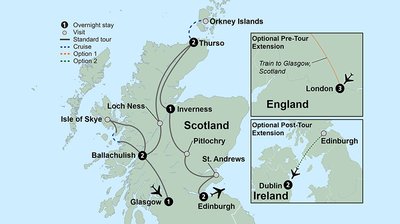 Take a stunning drive along the “Road to the Isles” and over the Skye Bridge to the legendary Isle of Skye, also known in poetry and song as Eilean a' Cheò (The Misty Isle). Enjoy dramatic views of the Sound of Sleat. Then, visit Armadale Castle & Gardens* and the Museum of the Isles to learn about island life and the history of Skye. Conclude your visit with views of the isle from yet another vantage point during a ferry crossing back to the mainland.