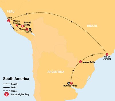 Explore South America's wonders: vibrant Buenos Aires, majestic Iguazu Falls, lively Rio de Janeiro, historic Lima, and the awe-inspiring Machu Picchu. Enjoy local tours, cultural shows, and breathtaking landscapes, creating unforgettable memories. Perfect for those seeking an immersive and diverse adventure through iconic cities and natural marvels.