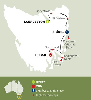 Later, stop at the Legerwood Carved Memorial Trees, planted in honour of fallen WWI soldiers. After a lunchtime stop at St. Helens, follow the picturesque east coast south to Bicheno. This evening you may like to take an optional tour to see Bicheno’s wild penguin colony as they emerge from the ocean for the night, or even take a tour to see Tassie Devils.