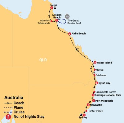 ✓ Incredible sightseeing including food tasting in the Hunter Valley, Koala’s in Port Macquarie, the surf town of Byron Bay, 4wd touring of Fraser Island, sailing in the Whitsunday’s and of course snorkeling the Great Barrier Reef