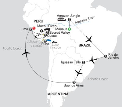 Board a flight for Lima, Peru. Heralded as the "City of Kings" by Spanish conquistadors, Lima still carries vestiges of its opulent past with its colonial buildings and world-class museums.