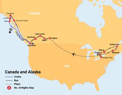 ✓ Incredible sightseeing, witness the beauty of the Niagara Falls and Quebec, explore the breathtaking Rockies, travel on the Rocky Mountaineer, and cruise the remote Inside Passage to Alaska