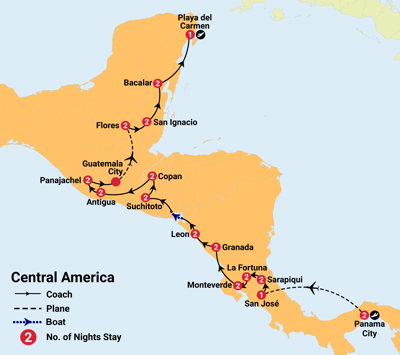 ✓ Visit eight countries across Central America in one seamless journey
