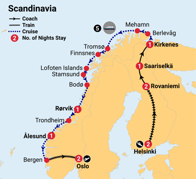 Hurtigruten's Norwegian Coastal Cruise along the scenic coast and fjords of Norway has often been praised as being one of the most beautiful voyages in the world. Each day of your voyage will yield unforgettable memories of natural beauty as you discover a coastline with an ever changing personality with a new revelation around every headland.