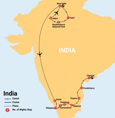 ✓ 22 nights accommodation in hand picked 4 & 5-star accommodation including 3 nights in a stunning historic mansion in Jaipur and one night aboard a deluxe houseboat in Kerala