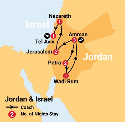 Please note that local accreditation requirements mean you will have different guides in each country. Border crossings between Jordan and Israel will be unescorted.