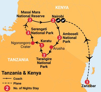 ✓ Fully escorted by an expert naturalist guide (except Zanzibar beach break)