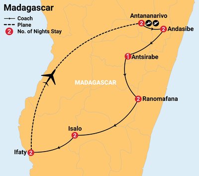 On your departure from Tuléar, you will say goodbye to your tour guide, and your group will be met by a local representative in Antananarivo, who will meet and greet you and transfer you to your hotel.