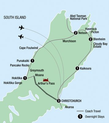 A short walk along the rocky headland will showcase the rugged coastline and sea life often on show amongst the rocks. Travel inland via the Buller Gorge and Murchison to Nelson, one of the sunniest cities in New Zealand.