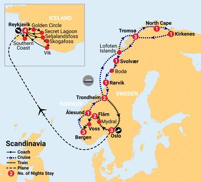 Winter conditions can affect transport schedules in Norway and Iceland, so flexibility is important and minor itinerary adjustments may occasionally be necessary.