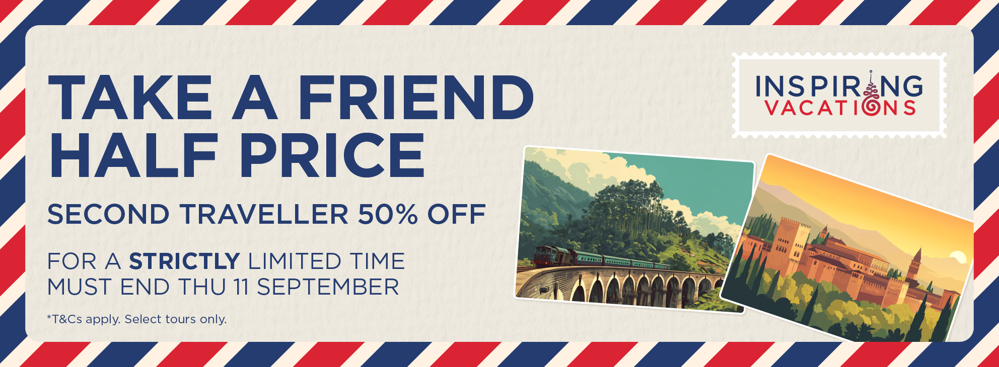 And with our new limited-time Take A Friend Half Price offer, the second traveller saves 50% off their place with code BUDDY50.