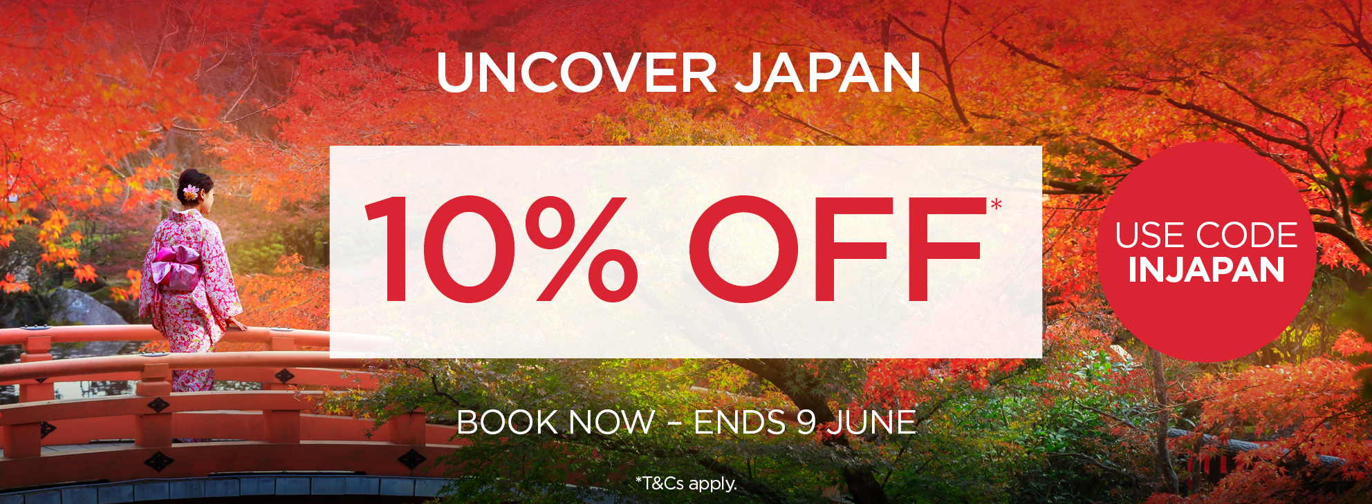 Use code INJAPAN at checkout to save 10% off unbeatable-value tour packages carefully crafted by the destination experts. This offer must end 11:59 pm 9 June 2025, or until sold out prior.