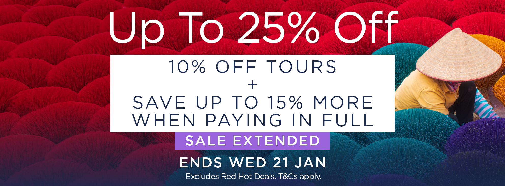 Take 10% off your tour price with code TOUR10 - and then save up to 15% more when you pay in full.