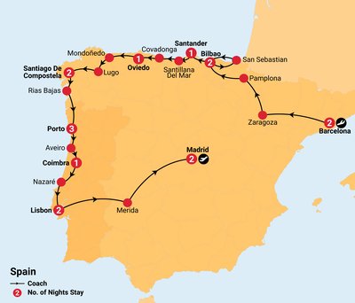 While in Spain, you will travel by private coach. This journey spans a vast and varied landscape, providing the perfect opportunity to sit back, relax, and enjoy the scenic views. Please review the itinerary for estimated travel times.