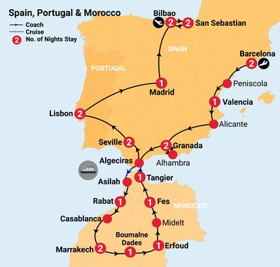 Spain, Portugal & Morocco - Group tour between 20 to 40 travellers